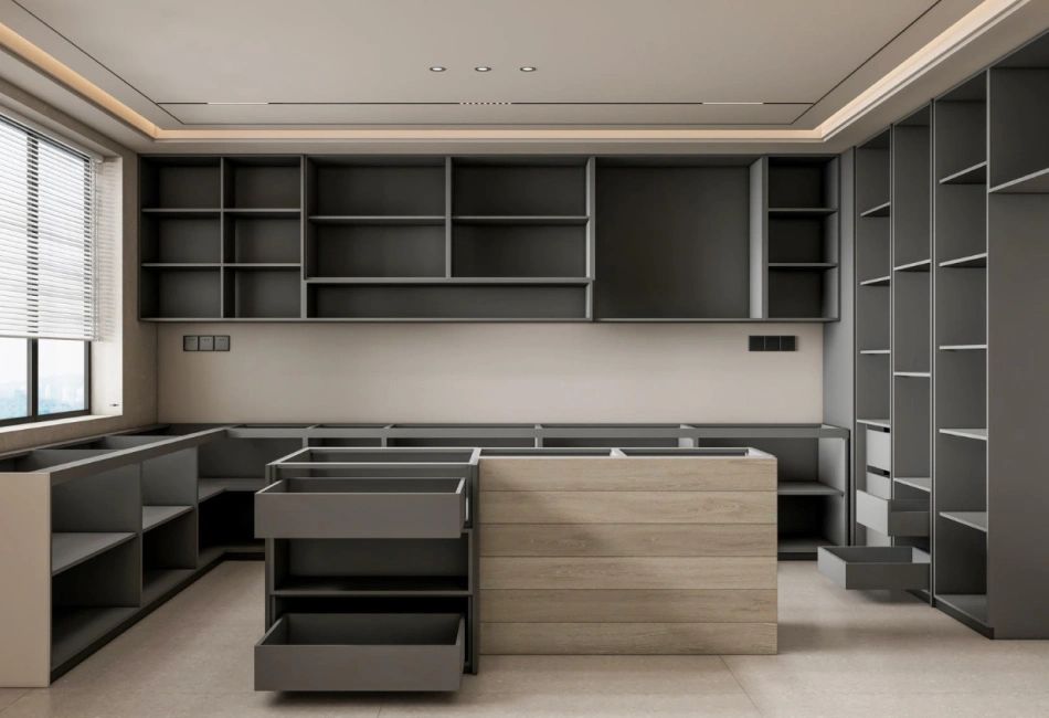 門片是系統櫃的「門面」,門片材質與安裝方式決定了櫃體的視覺風格與開關便利性,以下說明常見的 3 種門片板材與安裝方式: